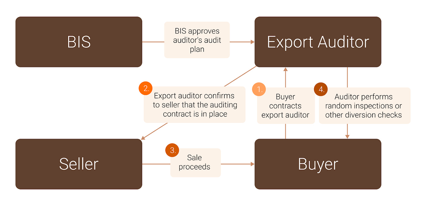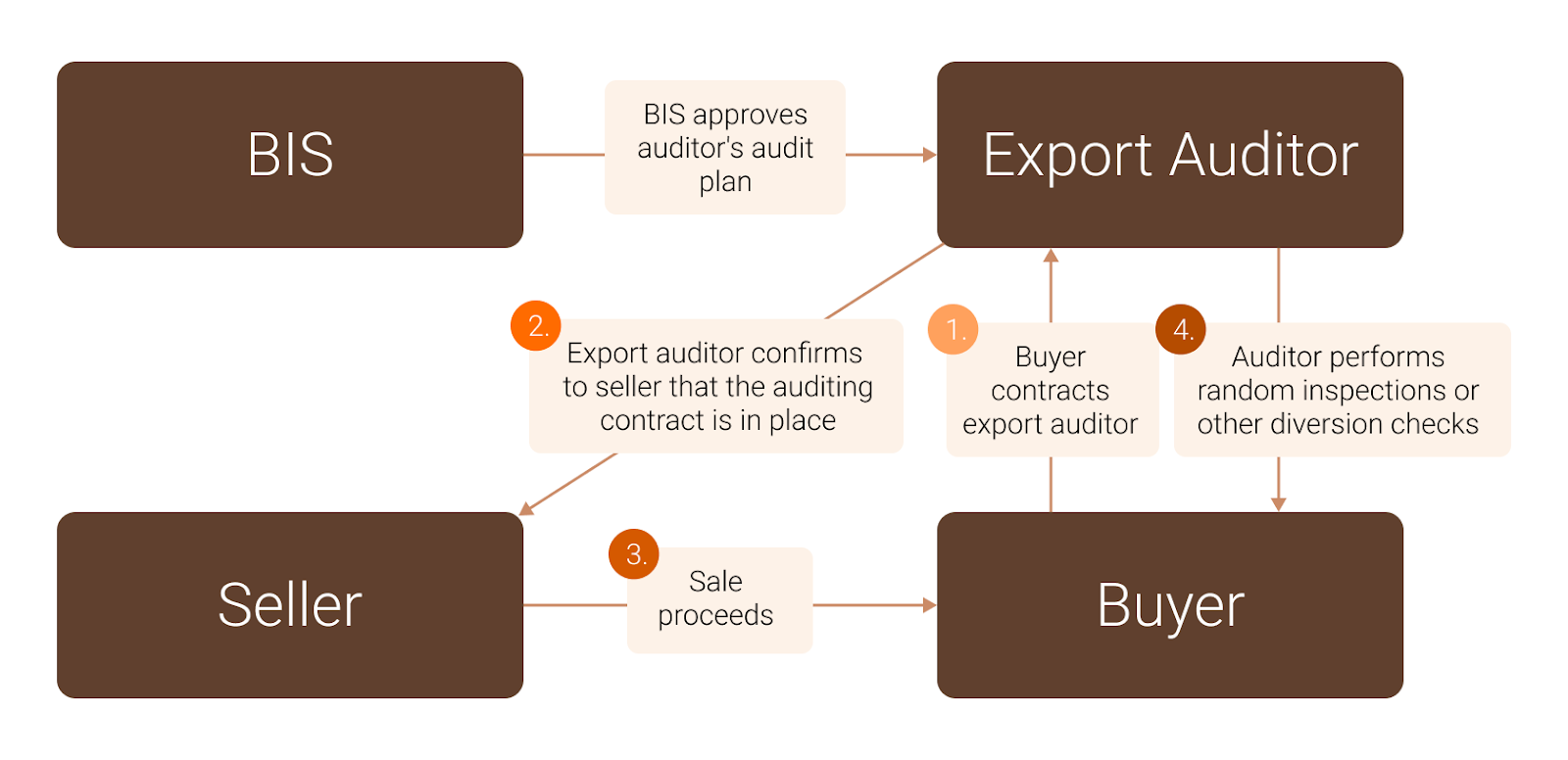 For some risky class of exports, BIS would then require the buyer to contract with an approved auditor and possibly to get a surety bond from an approved surety provider.